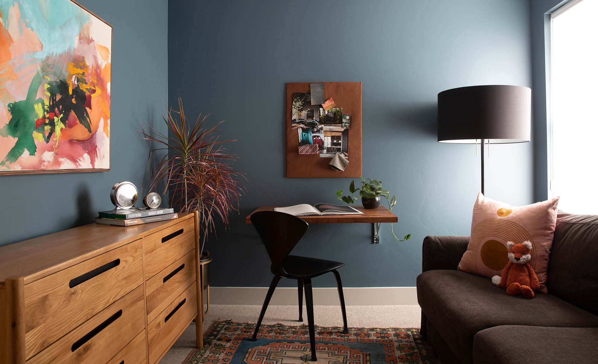 We leaned into their hobbies, travels, favorite movies, and music to discover the colors, shapes, and patterns they were both drawn to to design and furnish their Living Room, Dining Room, Primary Bedroom, and convert their spare bedroom into a multi-purpose guest room and office.