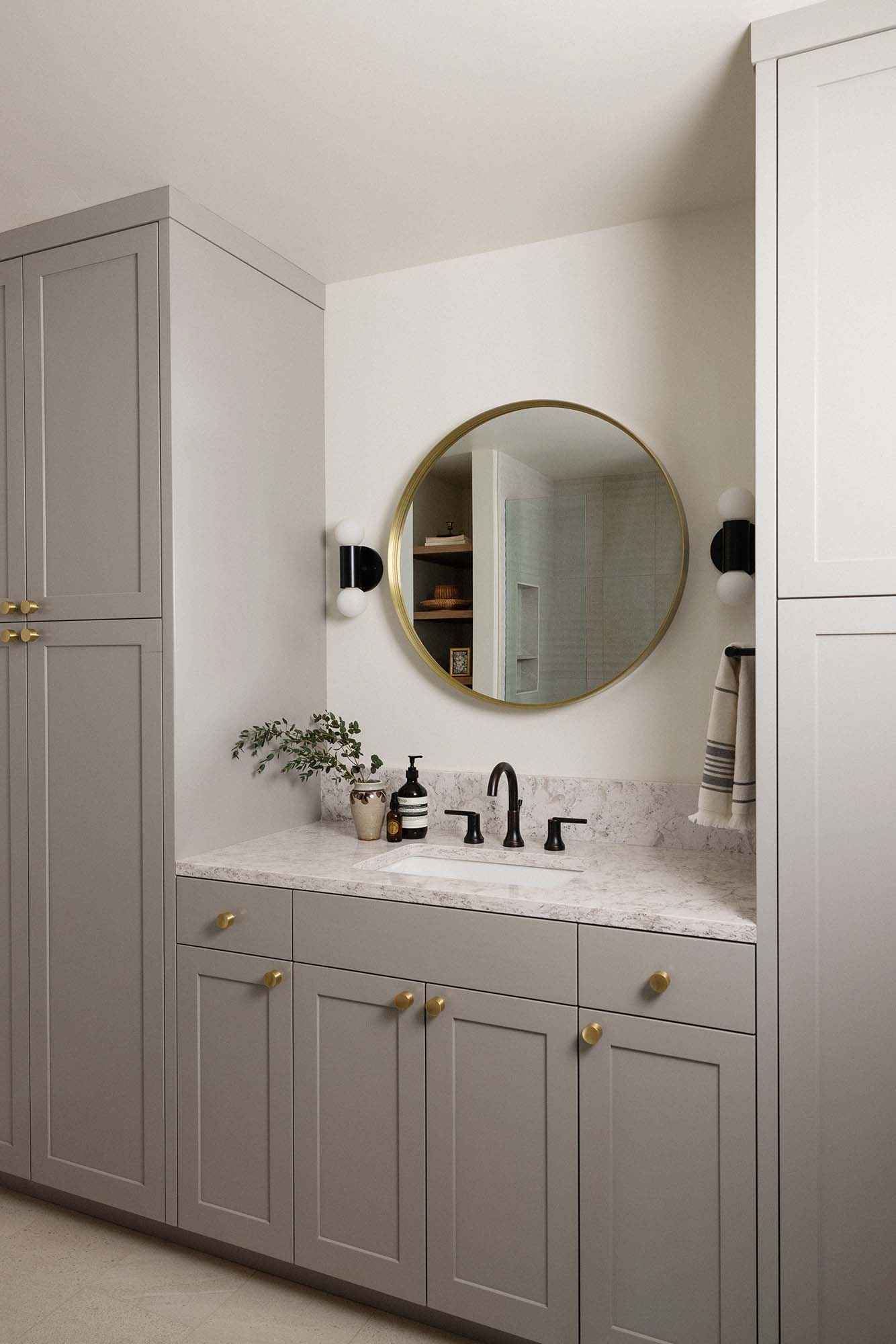 Located in Bend, Oregon’s Awbrey Butte neighborhood, this house boasted a family-friendly floor plan, abundant natural light, and beautiful architectural features. We worked closely with our clients to reimagine their home by addressing areas that did not meet their needs: the primary bathroom felt cavernous, the mudroom and laundry room lacked storage and functionality, and the guest bathroom was dark and impractical.