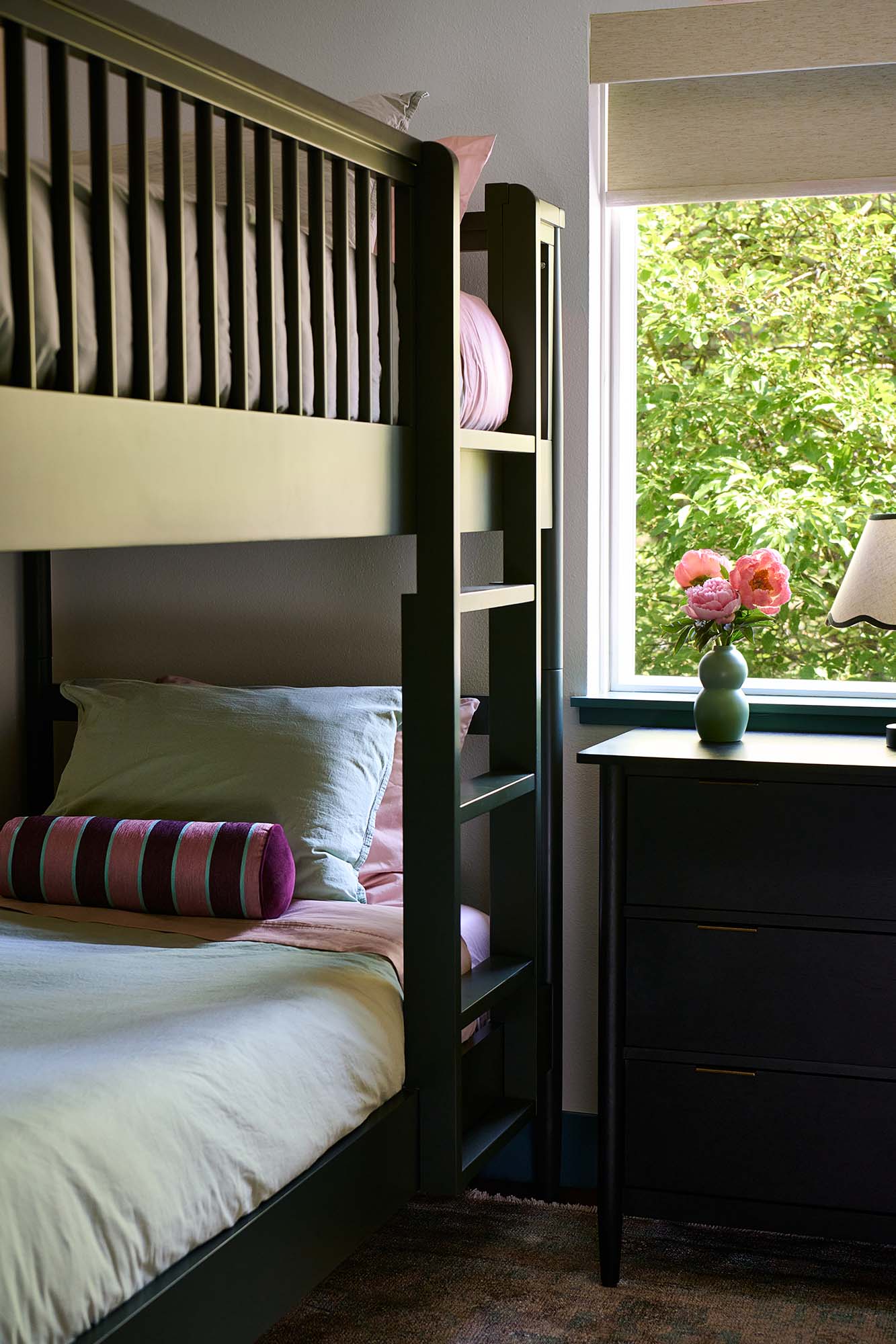 Using the home’s floor plan to our advantage, we envisioned a specific purpose for each room: a reading room, a cozy lounge by the fireplace, and a calming living room to rest and reset. We used color strategically to keep the space playful and curious, while also creating cohesion and an organic flow. Custom art was commissioned and selected to bring an extra layer of personality.
