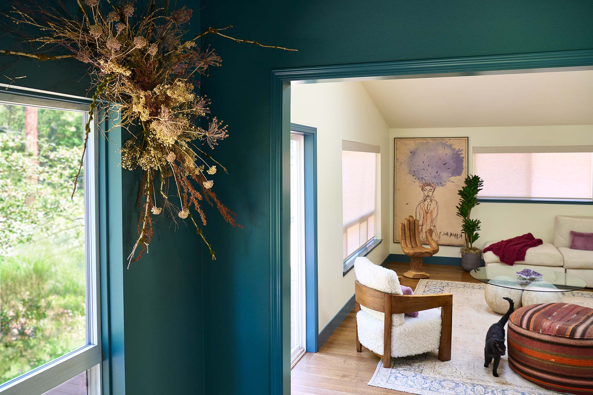 Our clients, who are psychedelic advocates and volunteer trip sitters at various events and festivals, wanted a home that felt safe and comfortable, as well as stimulating. The house sits in one of Bend’s oldest and most enchanting neighborhoods, First on the Hill.